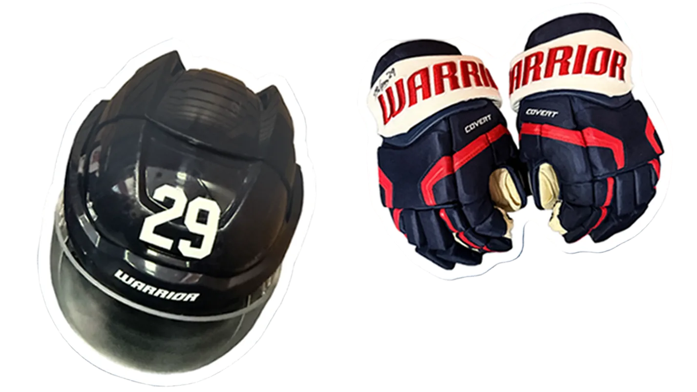 Game Worn Signed Helmet and Gloves Worn During the 2026 ECHL All-Star Classic.