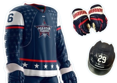 Authentic Game worn, signed, ECHL All-Star Classic Jersey, Helmet, and Gloves.