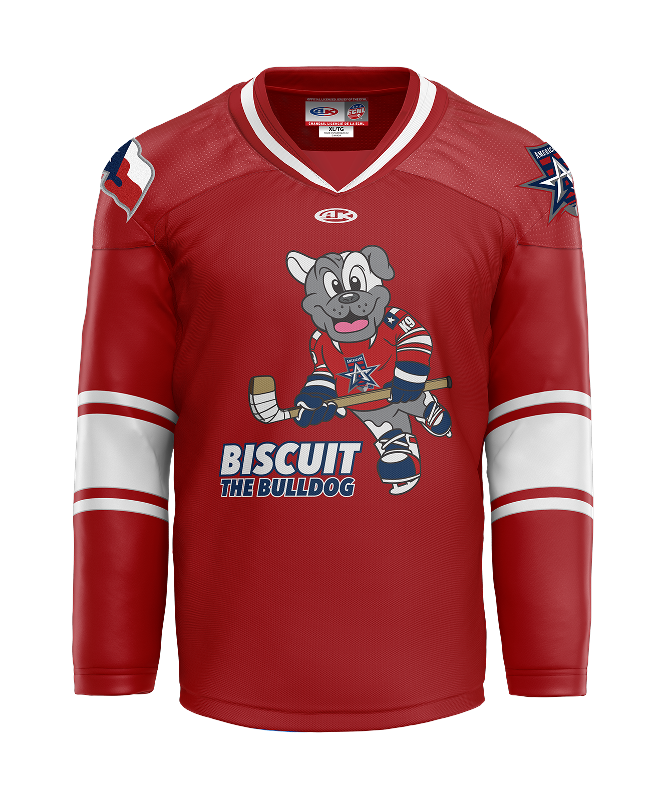Show team spirit and support the ECHL Mascot of the Year With the Red Youth Biscuit the Bulldog Sublimated Jersey.