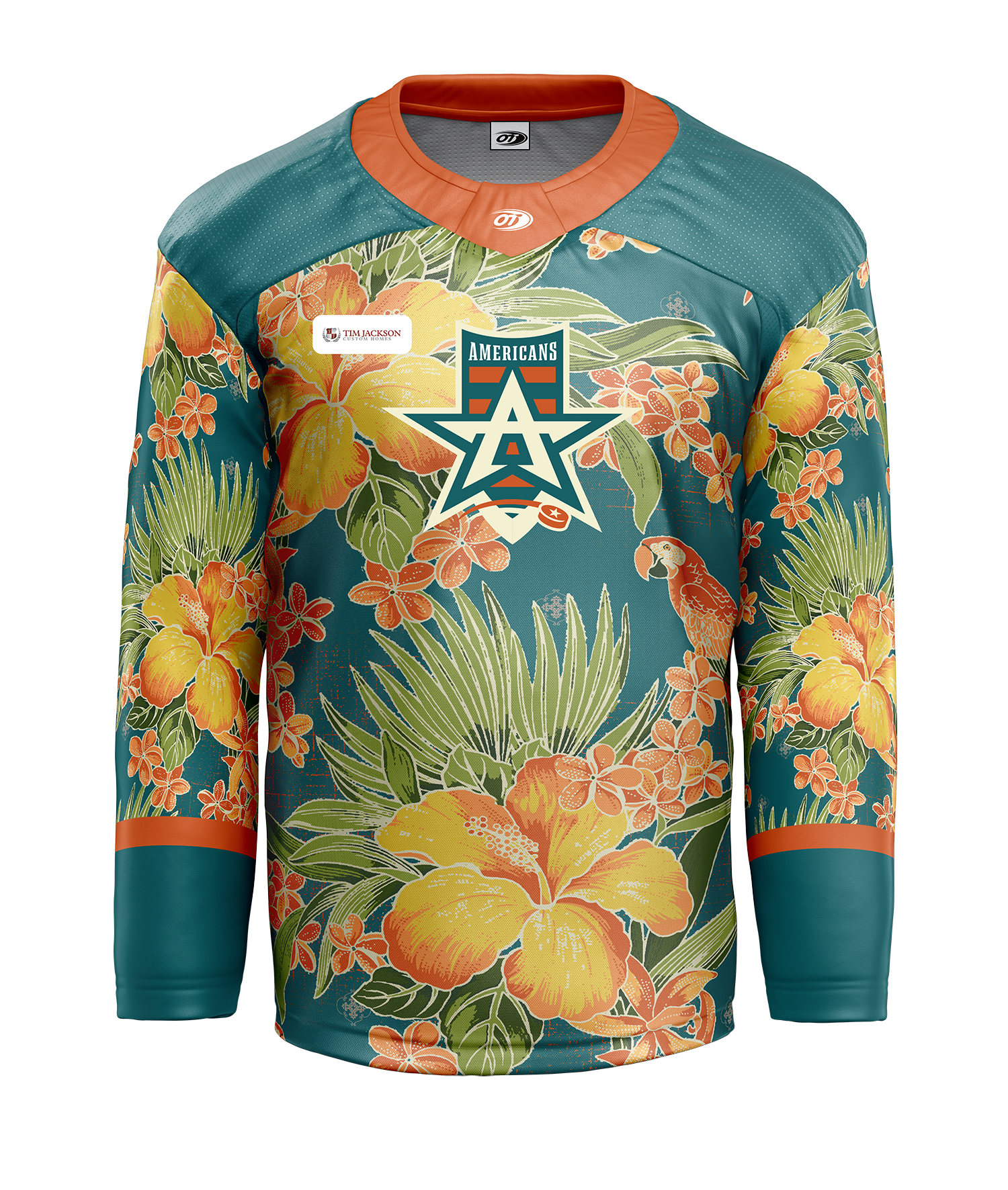 Featuring vibrant tropical colors, palm tree patterns, and a breezy design that captures the spirit of Margaritaville, this jersey is perfect for fans who know how to have a good time—on and off the ice. Made with premium materials and eye-catching detail, it’s a must-have addition to any Allen Americans collection.