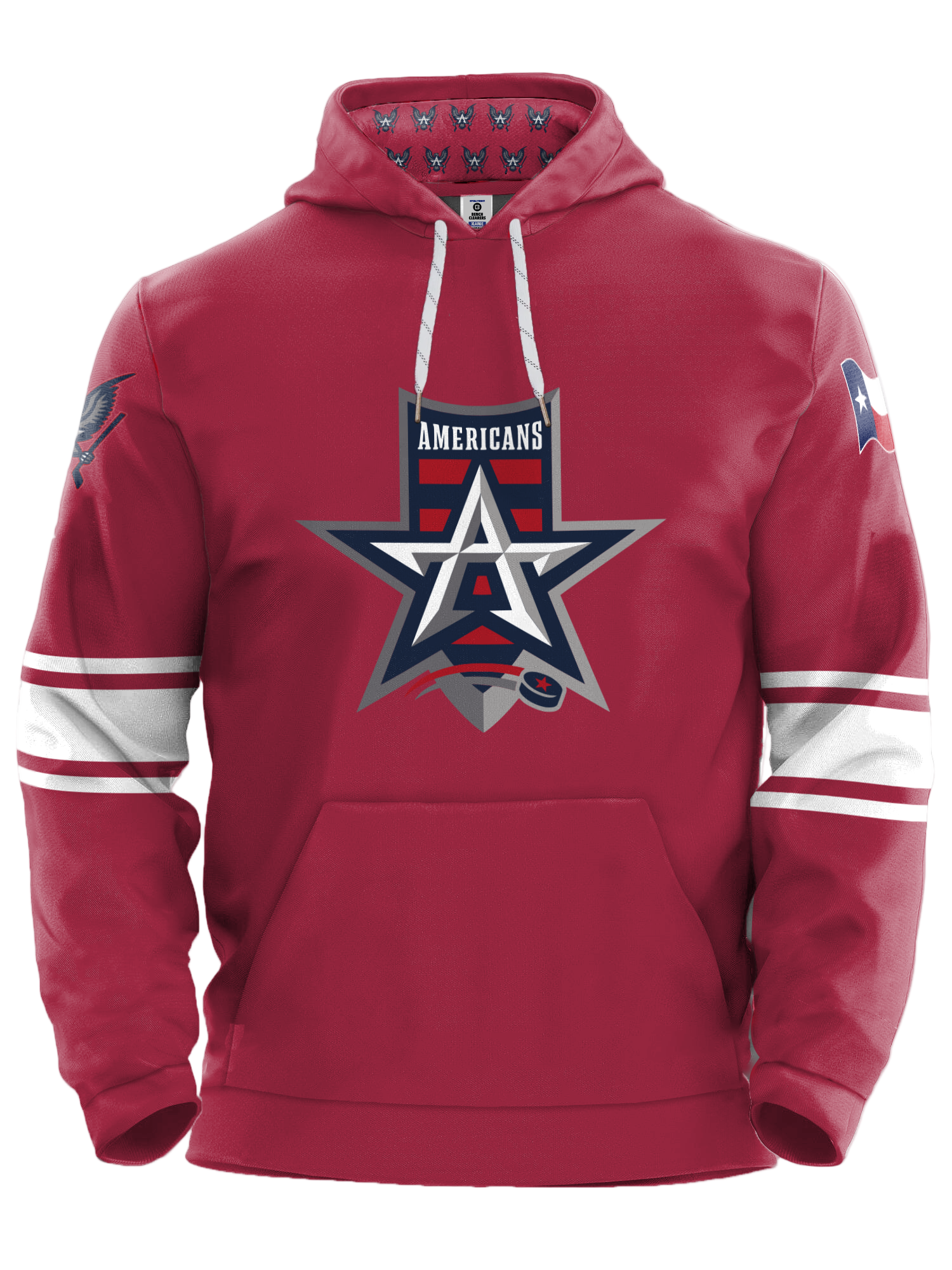 Stay warm in style this season with the Americans Red Sublimated Jersey Hoodie. Match the Americans Classic Red Jersey at the rink or anywhere.